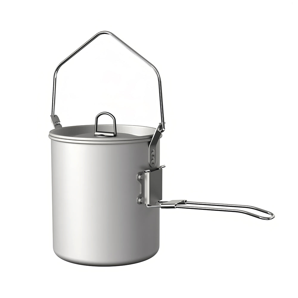 The pot features a detachable and foldable handle, allowing it to be packed away easily when not in use. This design helps save space during storage and transportation while reducing the risk of damage when carried in a backpack or camping gear.